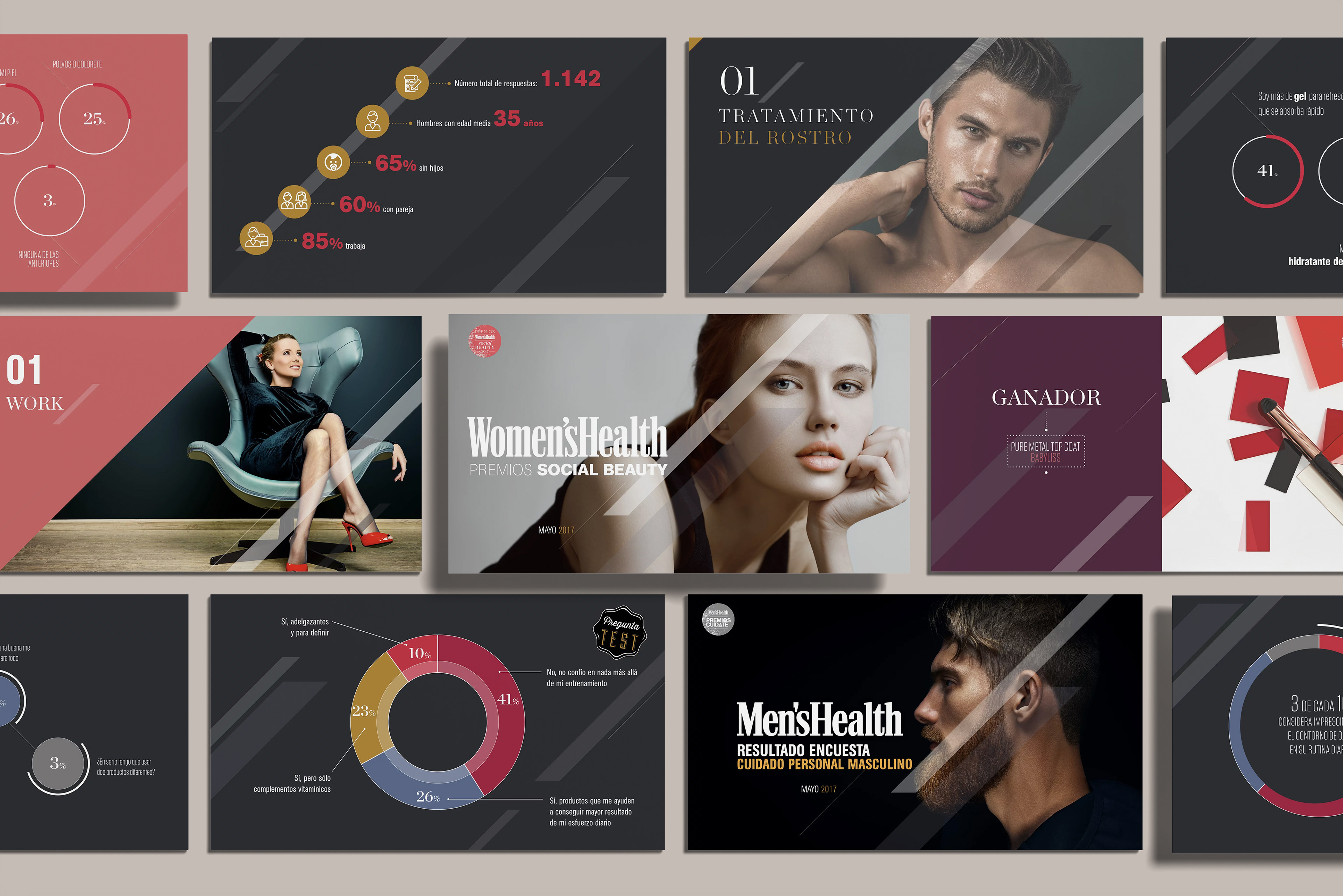 Entrega de premios de Men's Health & Women's Health de salud y cuidado personal. Durante el evento se presentó el estudio realizado sobre dichos ámbitos y se premió a los productos, personas y organizaciones más relevantes según los votos de los lectores de las revistas. Como en años anteriores fuimos los encargados de la realización de dicha presentación así como del diseño del estudio.